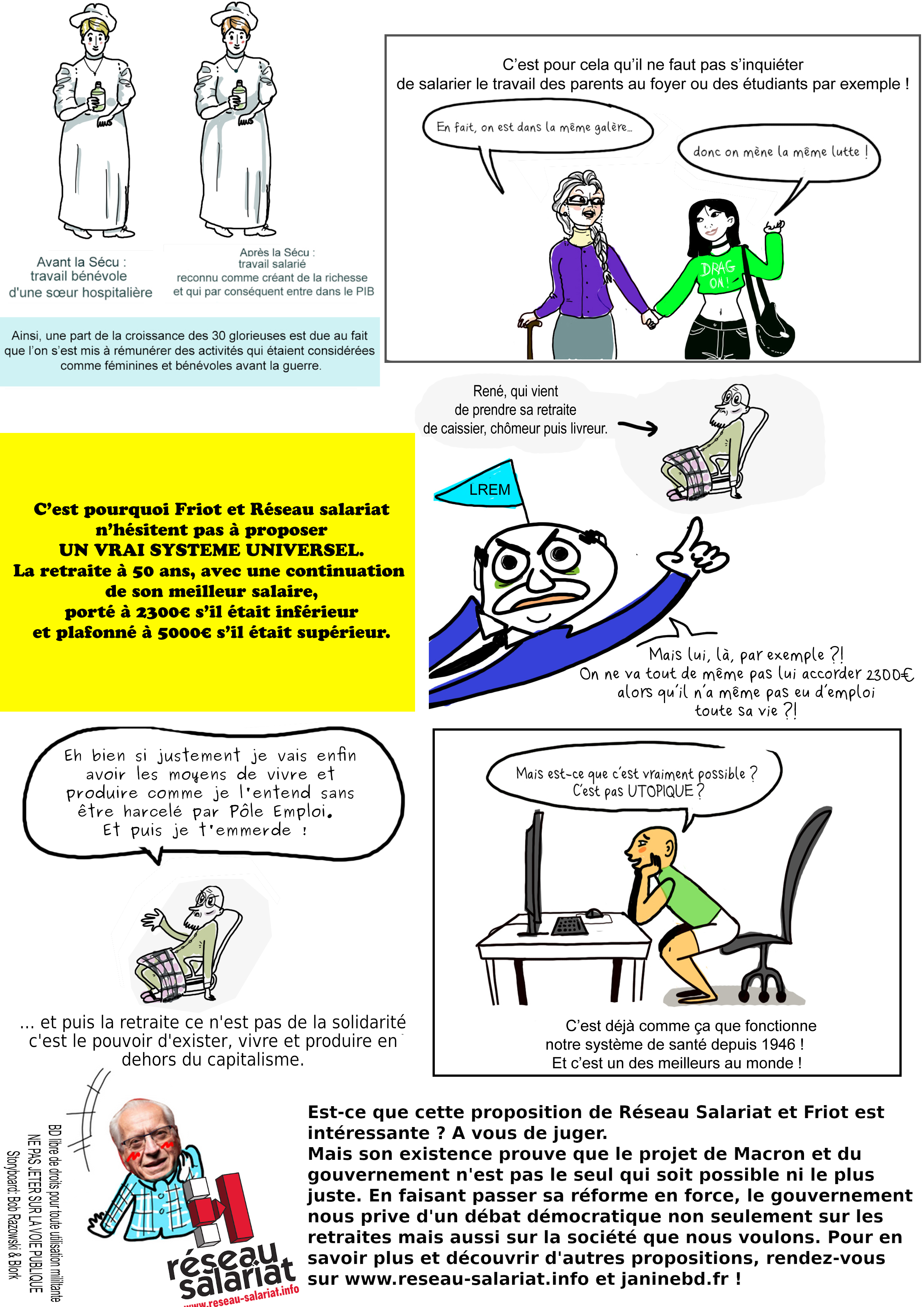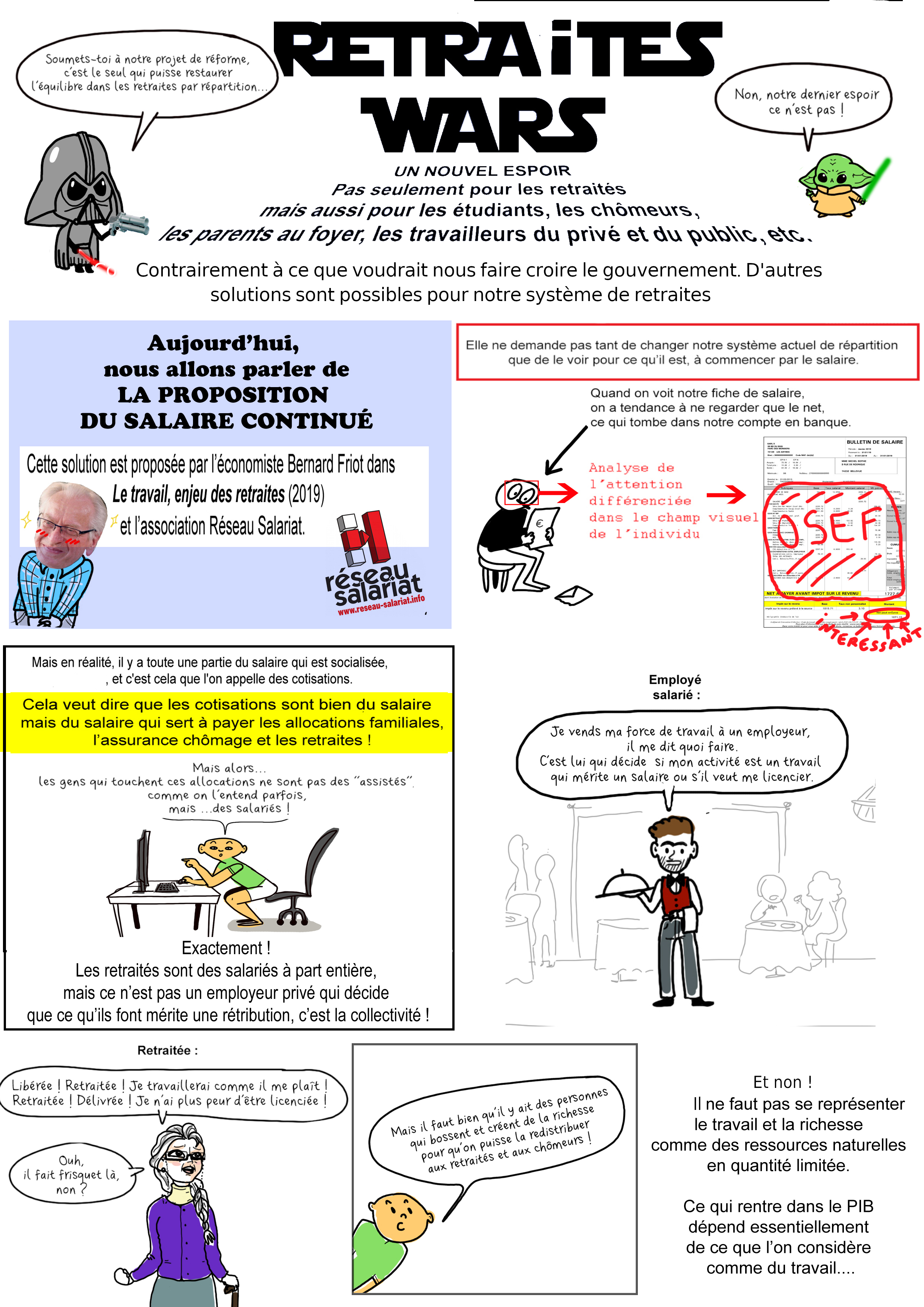 Une bande dessinée Retraites Wars de Janine et Réseau Salariat expliquant notre projet alternatif pour les retraites et la sécurité sociale. Des alternatives existent au projet des réformateurs capitalistes !! Le PDF de la BD à imprimer et distribuer en A4 recto/verso D’autres BD de Janine sur janinebd.fr !